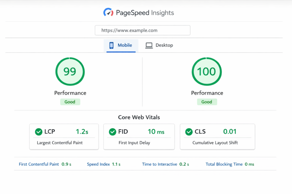 Symptom: Desktop PageSpeed scores 95-100, mobile scores 70-80.