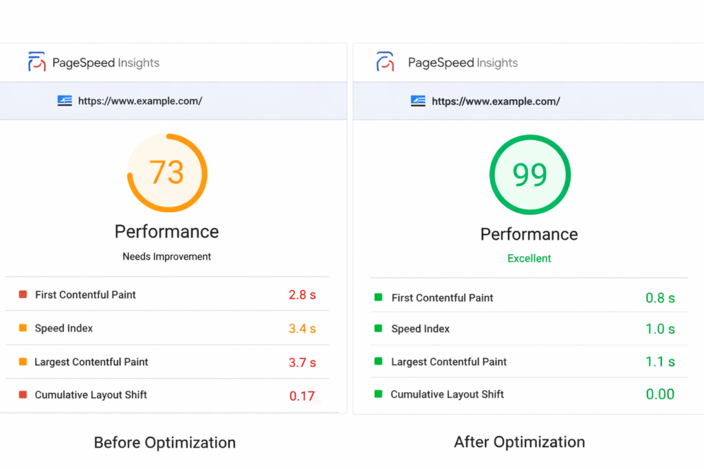 Basic configuration achieves 85-90 PageSpeed scores. These advanced optimizations push to 95-100.